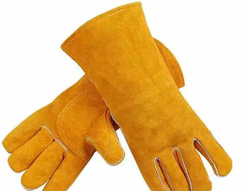 為防御焊接時的高溫、熔融金屬、火花燒灼手的個人防護(hù)用具。采用牛、豬狨革或二層革制成,按指型不同分為二指型、三指型和五指型。焊工手套有嚴(yán)格外觀要求。一級品要求革身厚薄均勻,豐滿柔軟而有彈性,革面絨毛細(xì)致、均勻、堅牢、顏色深淺一致,無油膩感。二級品:革身缺乏豐滿彈性、革面絨毛粗、顏色略有深淺。