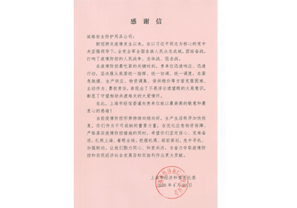 上海勞保協(xié)會(huì)感謝信