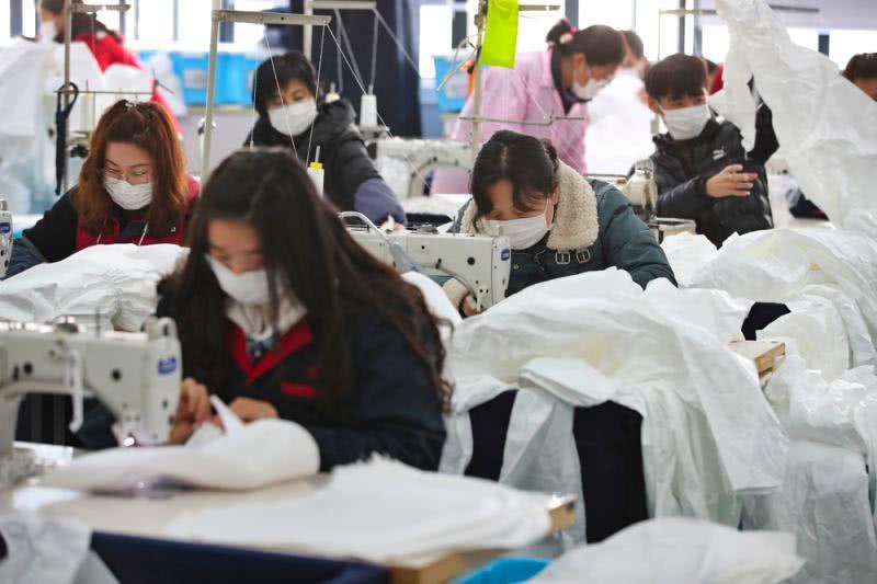 上海誠(chéng)格安全防護(hù)用品有限公司防護(hù)服生產(chǎn)車間經(jīng)過了幾天的設(shè)備調(diào)整,50多個(gè)車位,70多名工人正在加班加點(diǎn)趕制醫(yī)用防護(hù)服。