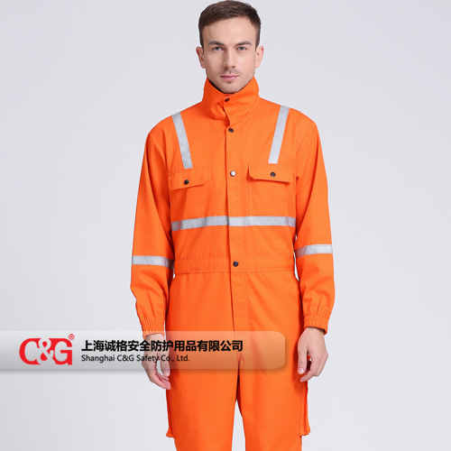 產(chǎn)品描述:200g/㎡,阻燃防護服采用杜邦™Nomex® IIIA面料制作。立領(lǐng)設(shè)計,兩個胸帶皆為雙線縫制,兩個后褲袋及斜插袋,前襟銅拉鏈加內(nèi)置四合扣封閉,橡皮帶收腰,采用配色阻燃線雙線埋夾縫制。